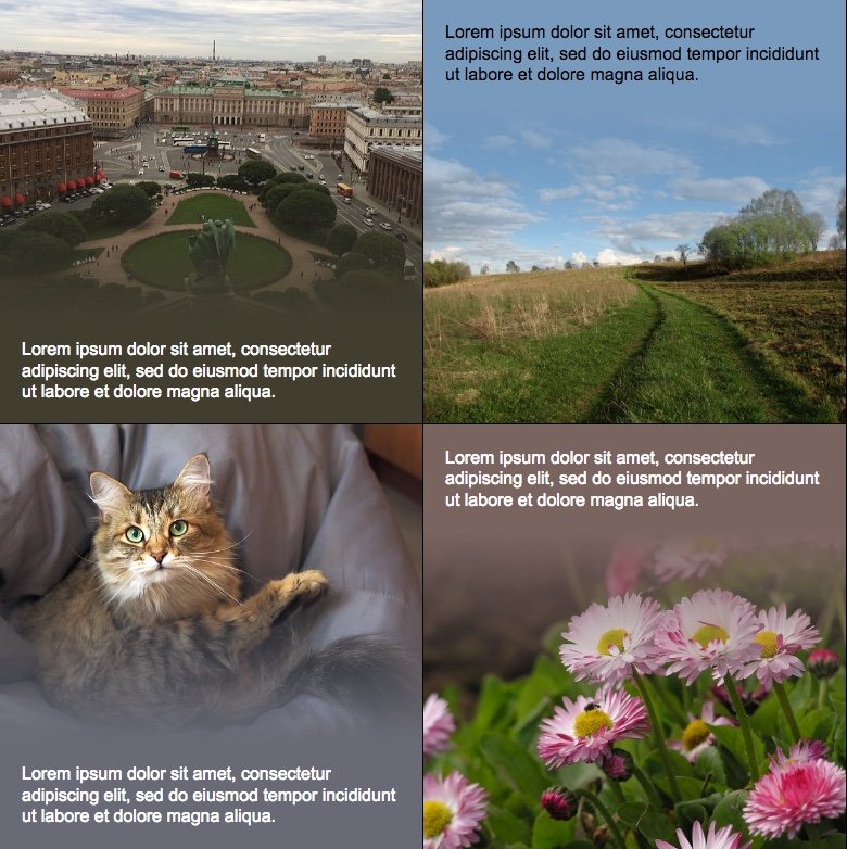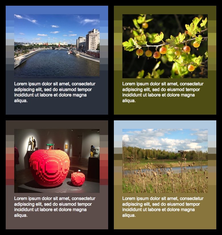 Ortalama rəng şəklin üst və alt hissələrindən götürülür və mətnin arxasına tətbiq olunur. Şəkil ilə fon arasında qradient var. Yandex Dzen-in tərzidir. Nümunə
