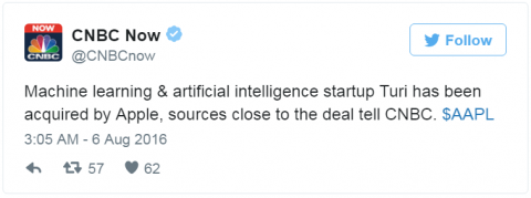 Technote.az-ın "Engadget.com” saytına istinadən verdiyi xəbərə əsasən Apple şirkəti Turi Inc. Startapını alıb.