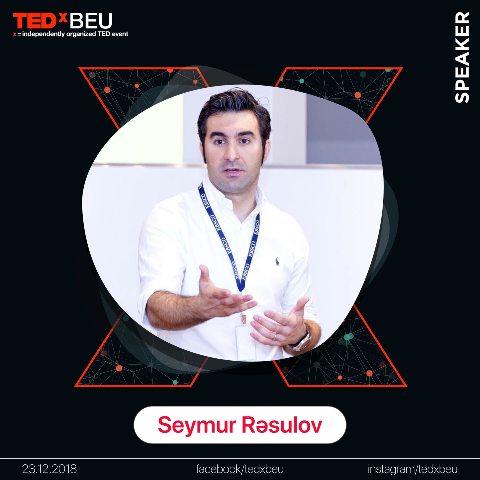 Dünyaca məşhur TEDx platforması növbəti dəfə şəhərimizdə sevənlərinin görüşünə gəlir. Z-dən A-ya mövzulu TEDx rəsmi olaraq TED tərbirləri kateqoriyasına daxildir. 23 Dekabr Bakı Mühəndislik Universitetində təşkil olunacaq bu tədbirdə, ölkəmizin bir çox məşhur simalarının çıxışı gözlənilir.