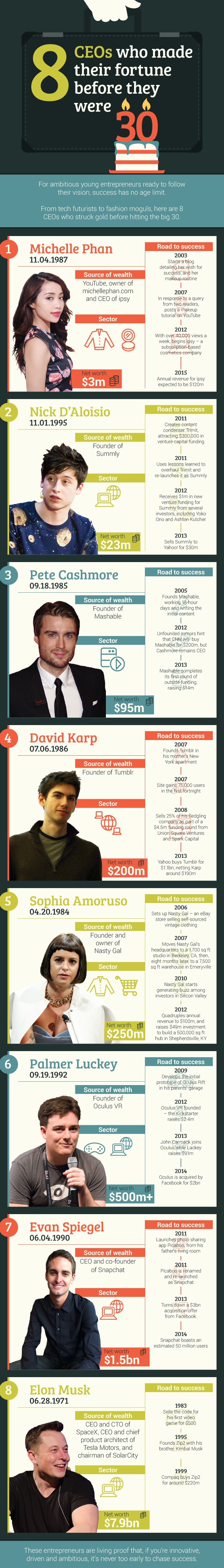 Uğurlu bir CEO xəyalı qurarkən ağlımıza həmişə orta yaşlarda biri gəlir. Ən son xəyal etdiyiniz şey isə 30 yaşın altındakı biridir. Texnologiya startuplarının artması ilə uğurlu CEO-ların yaş aralıqları heç olmadığı qədər gəncləşdi.