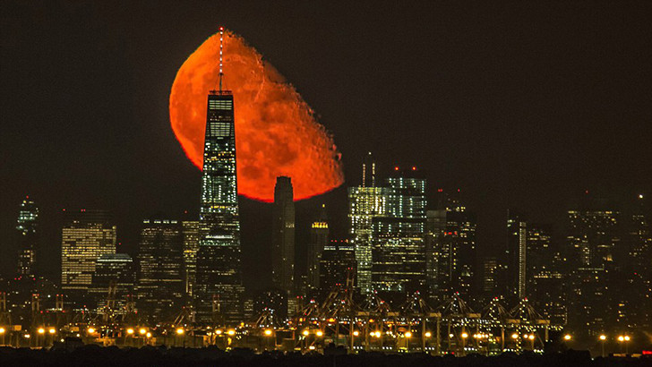 Əgər fikir vermisinizsə Ay iki gündür qırmızı rəngi ilə gecəmizi aydınladırdı. Lakin Ayın, xüsusilə Manhattan-da çəkilmiş diqqət cəlb edən görüntüsünü izləməyə dəyər.