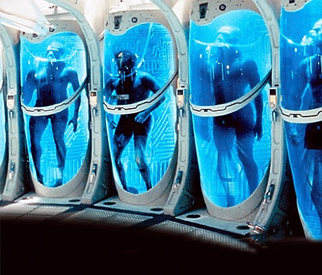 ildir kriogen balonunda buz kəsmiş halda gözləyən Bedford, donmuş insanları