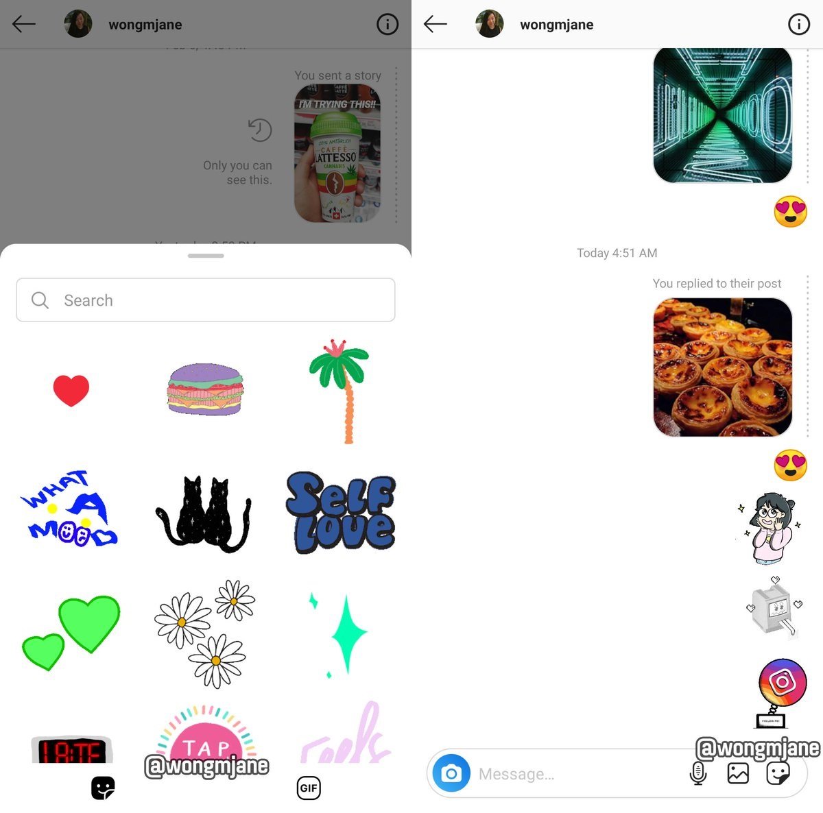 Bir neçə müddət bundan öncə tərtibatçı Jane Manchun Wong Instagram servisində istifadəçilərin öz paylaşımlarındakı bəyənmə saylarını gizlədə biləcəkləri barəsində məlumat vermişdi. İndi isə o, Instagram-ın test etdiyi yeni funksiyalar barəsində məlumatlar verib. Jane Manchun Wong-un öz Twitter hesabında paylaşdığı fotodan və yazdığı rəydən belə qənaətə gəlmək olar ki, yaxın zamanda Instagram Direct-də stikerlər göndərmək mümkün olacaq. Qeyd etmək lazımdır ki, stikerləri hələki yalnız Stories paylaşımlarına əlavə etmək mümkündür.