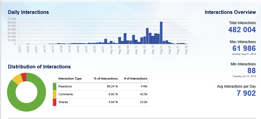 Bir ay müddətində rəsmi səhifədə 581 paylaşım edilib və bu paylaşımlardan 65-si video, 482-si isə şəkilli paylaşımlar olub. 33 paylaşım isə keçid linki ilə yerləşdirilib.
