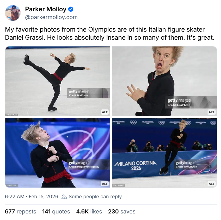 Xüsusilə kişilər arasında fərdi çıxışlar artıq başa çatıb və həmin yarışlardan yüzlərlə yeni foto yayımlanıb. İdmançının havada salto etdiyi an, eniş zamanı balansı itirməsi və ya proqramın sonunda emosional reaksiya verməsi, bütün bu məqamlar saniyənin mində birində dondurularaq vizual hekayəyə çevrilir. Getty Images fotoları kommersiya istifadəsi üçün ödənişlidir və üzərində su nişanı (watermark) yerləşdirilir. Lakin sayt istifadəçilərə həmin şəkillərə sərbəst baxmaq imkanı verir. Axtarış zamanı bəzən sürət konkisürməsi ilə bağlı fotolar da qarşınıza çıxa bilər, amma bir neçə səhifədən sonra əsas fiqurlu konkisürmə kadrlarına çatmaq mümkündür.