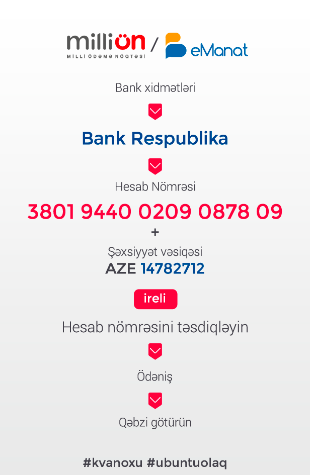 MilliÖn və Emanat üzərindən minimum 20 AZN ödəniş edərək bu kampaniyaya qoşula bilərsiniz.