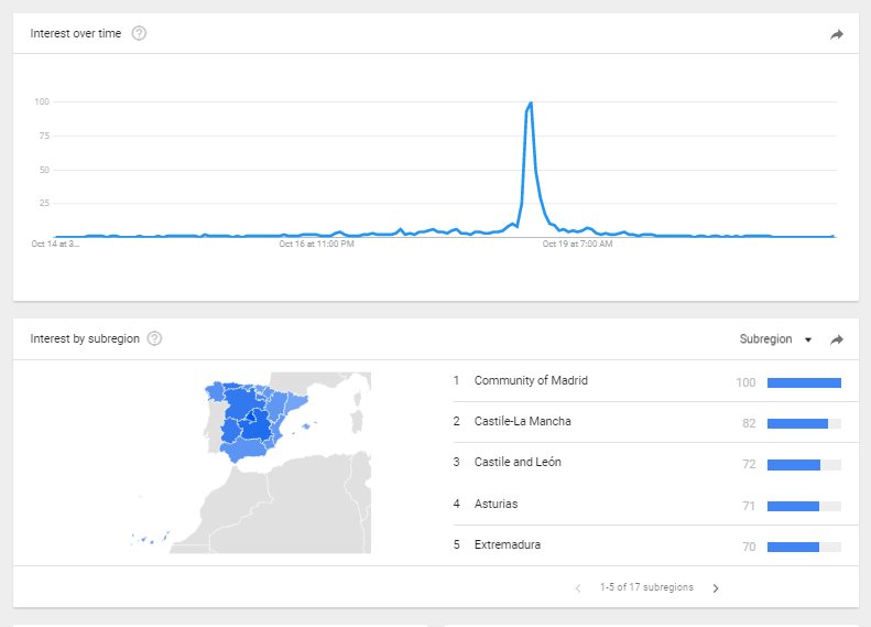 Nəticələr qlobal miqyası əhatə edir. 18 Oktyabr üçün sadəcə İspaniyada olan axtarış nəticələrinə nəzər saldıqda isə aşağıdakı nəticəni almış oluruq.