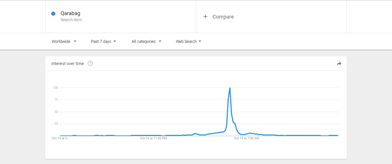 Statistikadan göründüyü kimi, 18 Oktyabr baş tutan oyunda "Google" axtarışlarının qrafikasında "Qarabag" açar sözünün axtarışı pik həddini yaşayır. Uyğun olaraq axtarış nəticələrinə görə ən çox oxunan yazıların siyahısı isə aşağıda qeyd olunub.