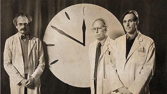 Chicagoda mövcud olan Bulletin of the Atomic Scientists toplusu tərəfindən idarə edilən bu saat Amerika və Rusiya arasında soyuq müharibənin mövcud olduğu vaxtlarda və nüvə təhdidlərin baş verdiyi məqamlarda gecə yarısına 2 dəqiqə qalaraq sazlanmışdı. Sonralar Amerika və Rusiya arasında müansibətlər mülayimləşəndə 23:43 olaraq saat geri alınmışdı.
