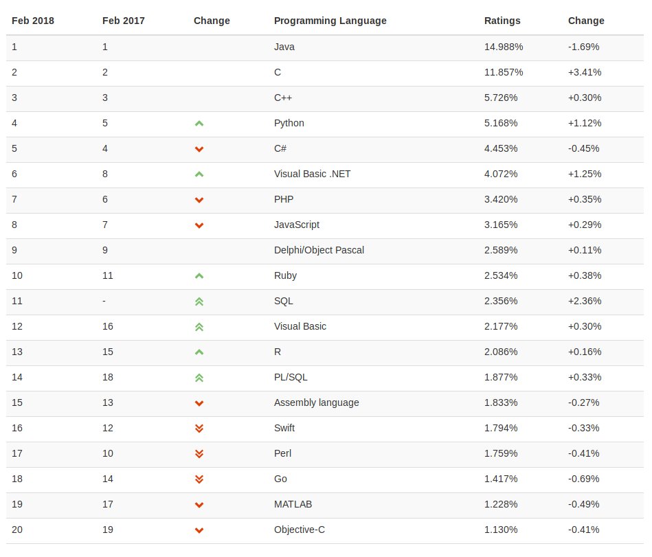 Proqramlaşdırma dillərinin istifadə statistikasını aparan TIOBE şirkətinin yekun qərarına görə Java 2015-ci ilin ən məşhur proqramlaşdırma dili elan edilmişdi. Və əgər biz bu gün - 21.02.2018 tarixində də TIOBE -yə nəzər salsaq görərik ki bu dil hələ də aktuallığını itirmir və hazırda da birinci yeri tutaraq 2018-ci ilin də liderliyini özündə saxlaya bilir.