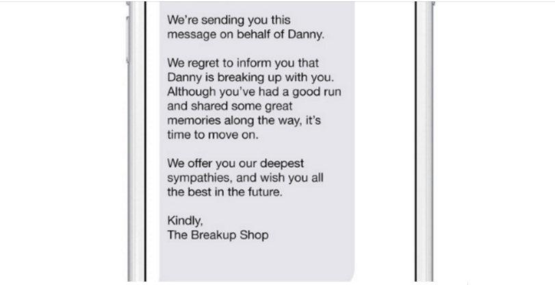 sizin üçün bir ayrılıq sms-i və ya e-maili hazırlayan The Breakup Shop, istəyinizə