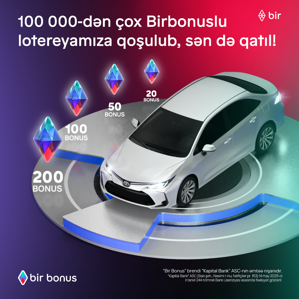 Bir ekosistemin elan etdiyi Bir Bonus lotereyasına artıq minlərlə iştirakçı qoşulub. Bu lotereyada həm bonus qazananlar, həm də xərcləyənlər iştirak edirlər. Artıq 100 000 nəfər Birbonuslu Toyota Corolla avtomobili və yüzlərlə bonus qazanmağa daha yaxındır.
