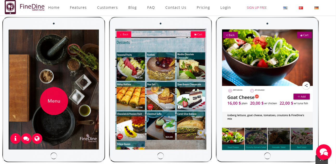 Hər bir restoranda masalara quraşdırılacaq tabletlər vasitəsilə, insanlar restoranların menyuları ilə daha interaktiv şəkildə tanış ola bilirlər. Hər hansı bir restoran üçün xidmətə qoşulmaq çox asan və sadədir. "FineDine Tablet Menu" proqram təminatını restoranda olan tabletlərə yükləyib, müştərilərə təqdim etmək mümkündür. Bügün bütün dünyada artıq 100-lərlə restoran bu təcrübəni istifadə edir. Müştərilərinə daha yaxşı xidmət göstərmək, menyu yenilənməsinə çəkilən xərcləri azaltmaq və müştəri məmnuniyyətini ölçmək üçün sözügedən elektron menyular ideal vasitədir desək yanılmarıq.