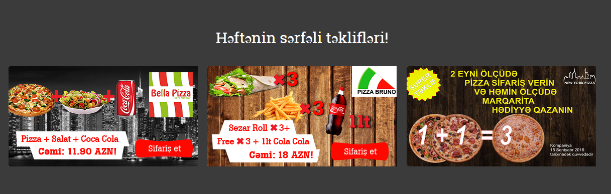 bölmədə restoranlar sərfəli qiymətə menyular təklif edərək sifarişçilərin