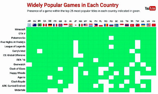 olar ki, bütün dünya ölkələrində maraqla oynanılır. İkinci pilləni isə Grand Theft Auto V, üçüncü yeri isə Pokemon Go əhatə edir. Digər diqqət çəkən məqam isə ən aktiv istifadəçilərin Yaponiya və Tayvandan olmasıdır.