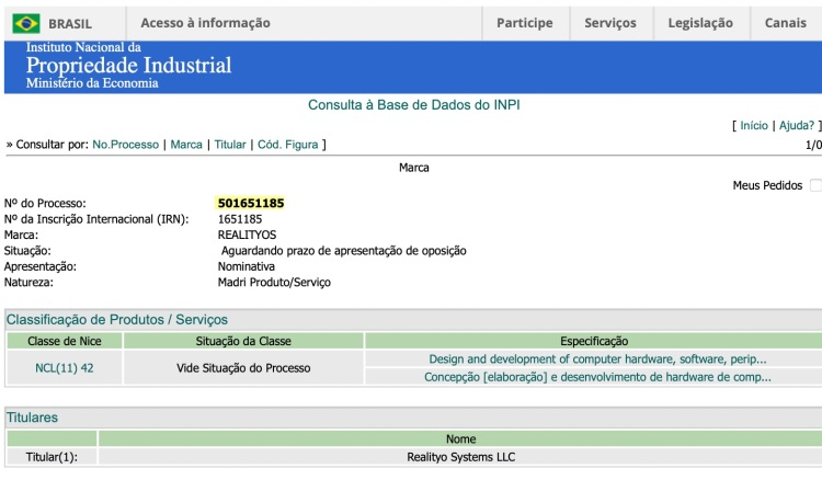 Daha sonra məlumat ortaya çıxdı ki, Realityo Systems adlı şirkət eyni ticarət nişanını həmçinin Braziliya, Uruqvay və Uqandu kimi digər ölkələrdə də qeydiyyatdan keçirdib. RealityOS ticarət nişanının hansısa təsadüfi şirkət tərəfindən qeydiyyatdan keçirilməsinə baxmayaraq çox güman ki, həmin şirkət Apple ilə əlaqəlidir. Apple həmişə anons olunmamış yeni məhsullarının gizliliklərinin yüksək səviyyədə təmin olunmasına böyük diqqət ayırıb. Məlumata əsasən Apple hələ təqdim edilməmiş məhsulları əhatə edən ticarət nişanlarının və patentlərinin qeydiyyatlarını reallaşdıran əlavə şirkətlərə sahibdir. Bu isə öz növbəsində yeni məhsul barəsində ola biləcək məlumat sızıntısı ehtimalını aşağı salmağa imkan verir. RealityOS çox güman ki, Apple şirkətinin yeni əməliyyat sistemidir və o, şirkətin gələcək artırılmış və qarışıq reallıq cihazlarında istifadə ediləcək.