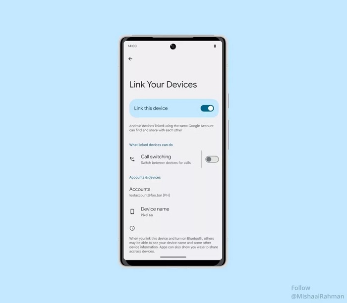 Bu funksiya çərçivəsində reallaşdırılacaq Call Switching imkanı zəng prosesi zamanı bir cihazdan digərinə keçidi mümkün edəcək. Apple ekosistemində oxşar funksiya bir iPhone modelinə daxil olan zəngi digər iPhone-da qəbul etməyə imkan vermir. Lakin Google şirkətinin hazırladığı alternativ çərçivəsində hətta smartfonlar da daxil olmaqla istənilən cihaz arasında keçidi reallaşdırmaq mümkün olacaq.