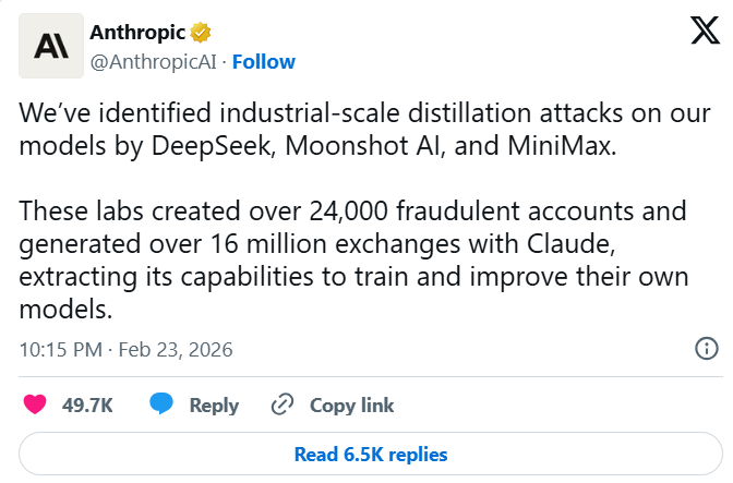 Technote.az “Mashable” platformasına istinadən bildirir ki, ABŞ mərkəzli süni intellekt şirkəti Anthropic üç Çin AI laboratoriyasını, DeepSeek, Moonshot AI və MiniMax-ı öz model imkanlarını qanunsuz şəkildə əldə etməyə çalışmaqda ittiham edib.