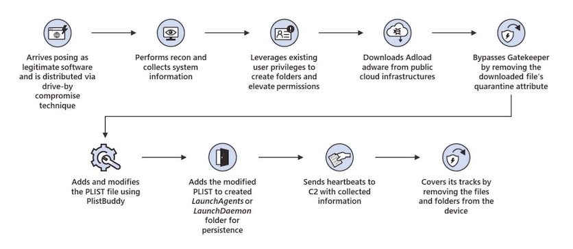 Microsoft şirkətinin rəsmi bloqunda macOS üçün nəzərdə tutulmuş zərərli proqram təminatı barəsində məlumat təqdim edilib. Məlumata əsasən hackerlər zərərli proqram təminatından 1 ildən çoxdur ki, istifadə edirlər. Mütəxəssislərin sözlərinə əsasən virusun mövcud olduğu müddət ərzində Apple şirkəti macOS-də mövcud olan sistem boşluğunu aradan qaldırmayıb. Nəticədə sözügedən əməliyyat sistemi üçün nəzərdə tutulmuş virus daimi şəkildə özünü təkmilləşdirib. Verilmiş məlumata əsasən UpdateAgent adını əldə etmiş bu virus macOS vasitəsilə çalışan kompüter və noutbuklara daimi backdoor (tərtibatçı tərəfindən alqoritmə bilərəkdən inteqrasiya edilən boşluq) yerləşdirir.