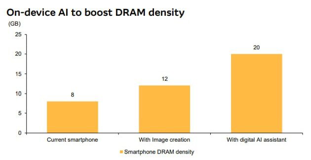 Analitiklərin təqdim etmiş olduqları statistik qrafikdən də görmək olar ki, 8 GB-lıq RAM hal hazırda aktual olan smartfonlar üçün yalnız baza tapşırıqlarının yerinə yetirilməsində kifayət edir. Süni zəka vasitəsilə fotoların stabil şəkildə emal edilməsi üçün isə smartfonun artıq 12 GB RAM-a ehtiyacı olur. Süni zəka köməkçisi ilə birgə digər neyron şəbəkəsi funksiyalarının istifadəsi üçün smartfonun minimum 20 GB RAM-a sahib olması lazımdır. Hal hazırda bazarda 20 GB RAM-a sahib smartfonlar artıq satışda var. Lakin onların sayı hələ ki, azdır. Mütəxəssislərin proqnozlarına əsasən 2024-cü ildə 20 GB RAM-a sahib smartfonların sayı artacaq.