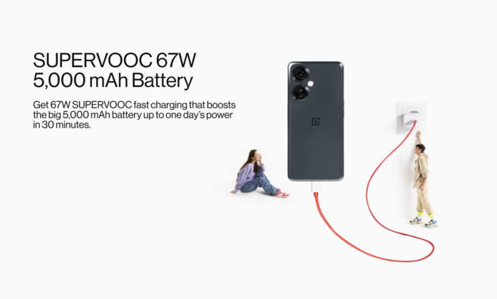 Beləliklə təqdim edilmiş tizer fotolardan birinə əsasən smartfon 67 vatt gücündə sürətli şarj texnologiyalı 5000 mAh enerji tutumlu batareya ilə təchiz olunacaq. Bundan əlavə olaraq yeni tizer fotolarda smartfon boz rəngdə əks olunub. Son məlumat sızıntılarına əsasən OnePlus Nord CE 3 Lite smartfonu 120 Hz-lik təsvir yenilənməsinə sahib Full HD+ keyfiyyətli 6.72 düym IPS ekran, Snapdragon 695 prosessoru və əsas kamera obyektivi 64 MP-lik olacaq üçlü arxa kamera ilə təchiz olunacaq.