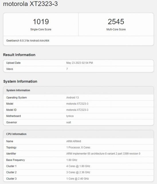 Təqdimata az müddət qalmış qatlana bilən qapaqlı yeni Motorola RAZR 40 smartfonunun Geekbench testlərindən keçdiyi məlum olub. Geekbench məlumatlarına əsasən smartfon Snapdragon 7 Gen 1 prosessoru vasitəsilə çalışacaq. Geekbench testlərindən Motorola RAZR 40-ın 12 GB RAM-a sahib versiyası keçib. Beləliklə smartfon Geekbench-in bir nüvəli testi çərçivəsində 1019 xal, çox nüvəli testi çərçivəsində isə 2545 xal toplayıb. Geekbench-də smartfon barəsində digər məlumatlar olmasa da, gözləntilərə əsasən Motorola RAZR 40 Ultra kimi adi Motorola RAZR 40 modeli də xarici ekran ilə təchiz olunacaq. Lakin adi modeldə xarici ekranın kiçik ölçüdə olacağı güman edilir. Qeyd etmək lazımdır ki, Motorola RAZR 40 smartfon seriyası 1 iyun tarixində təqdim ediləcək.