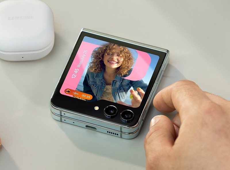 Samsung Galaxy Unpacked tədbirinin keçirilməsinə 1 saat qalmış internetdə qatlana bilən qapaqlı Galaxy Z Flip 5-in yeni real fotoları ortaya çıxıb. Qeyd etmək lazımdır ki, Galaxy Z Flip 5 smartfonu Galaxy Z Fold 5 ilə birlikdə 1 saatdan sonra Galaxy Unpacked tədbiri çərçivəsində təqdim olunacaq. Sızdırılmış real fotolar Galaxy Z Flip 5 barəsində yeni bir şeyləri sərgiləməsə də, smartfonun xarici görünüşünə detallı şəkildə baxmağa imkan verirlər. Artıq aydın məsələdir ki, Galaxy Z Flip 4-dən fərqli olaraq Galaxy Z Flip 5 smartfonu böyük ölçülü xarici ekran ilə təchiz olunacaq. Bununla yanaşı yeni real fotolardan da görmək olar ki, tam qatlanmış vəziyyətdə smartfonun iki hissəsi arasında heç bir boş aralıq mövcud olmayacaq. Bu isə smartfonda yeni şarnir konstruksiyasından istifadə edildiyinə işarə edir.