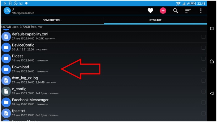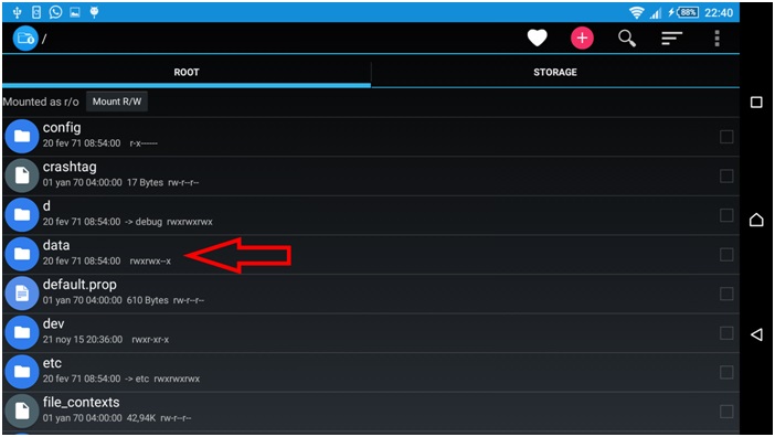 Telefonuzuma Root Explorer tətbiqini yüklədikdən sonra açırıq və qarşımıza iki pəncərə: ROOT və STORAGE pəncərələri çıxır.