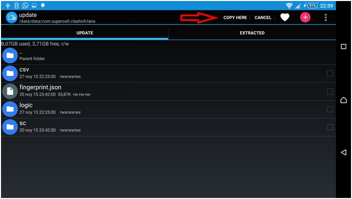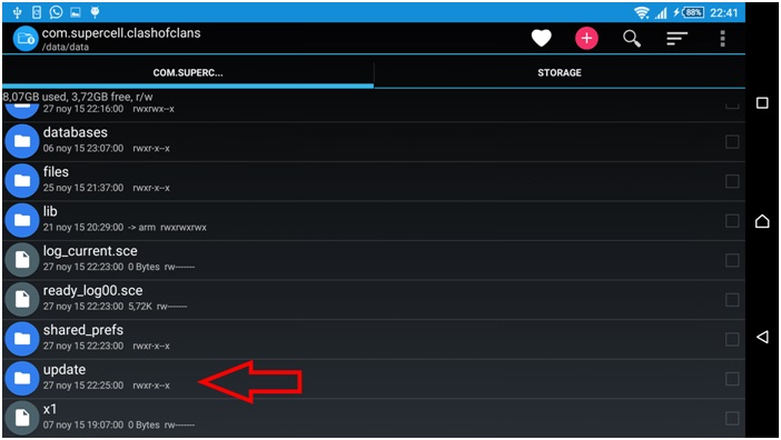 com.supercell.clashofclans qovluğunda update qovluğunu tapıb açırıq: