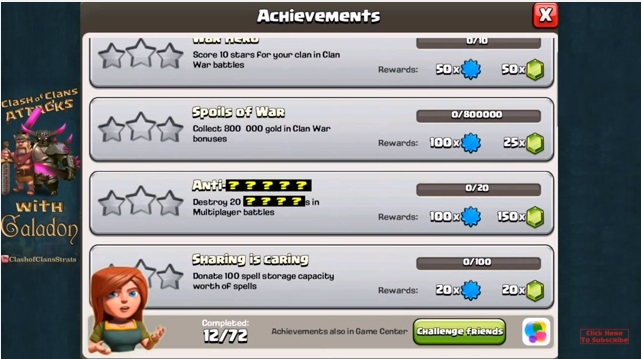 Digər yeniliklər barədə də açıqlama edən Supercell yeni achievents(missiyalar) olacağını açıqladı. Bildiyiniz kimi oyunda missiyalar bölümündəki tapşırıqları yerinə yetirməklə siz həm xp, həm də gems əldə edirsiniz. TH10 olan oyunçuların əksəriyyəti bu missiyaların demək olar ki, hamısını tamamlayıb. Artıq TH11 ilə birlikdə yeni missiyalar da olacaq. Onlardan birinin nə olduğu dəqiq deyilməsə də, digəri klan qalasında qara sehir göndərmək tapşırığıdır. Adı məlum olmayan missiyanın ilk ulduzunda 100 xp və 150 gems, 100 qara sehir göndərməklə isə 20 xp və 20 gems qazanacasınız.
