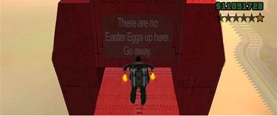 Jetpack ilə Las Venturasla San Fierro arasındakı körpünün ən üst hissəsinə çıxsanız "Burada heç bir yumurta yoxdur. Geri qayıdın" kimi yazı ilə qarşılaşacaqsınız.