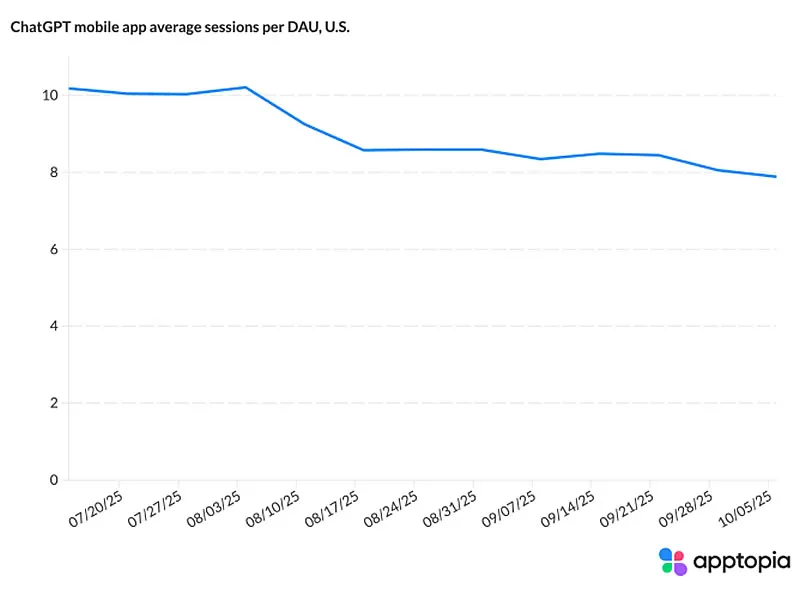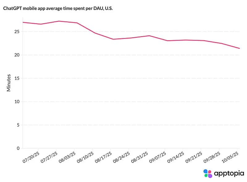 Statistika göstərir ki, məsələn, ABŞ-da bir gündəlik aktiv istifadəçi tərəfindən tətbiqdə sərf olunan orta vaxt iyul ayından etibarən 22.5% azalıb, bir gündəlik aktiv istifadəçi üçün orta sessiya sayı isə 20.7% azalıb. Bu da onu göstərir ki, amerikalı istifadəçilər tətbiqi daha az işə salmağa başlayıblar. Bununla belə, ABŞ-da istifadəçi itkisi azalıb və sabitləşib, bu isə o demək ola bilər ki, artıq daimi istifadəçilərdən ibarət bir əsas auditoriya formalaşıb, qısamüddətli ziyarətçilər isə platformanı tərk ediblər. Apptopia-nın məlumatına görə, bu dinamikanın formalaşmasına həm xarici, həm də daxili amillər təsir edib. Xüsusilə, yaz aylarında süni intellekt modelinin daha az itaətkar olması məqsədilə yeniləmə təqdim edilmişdi, avqustda isə istifadəçilər tərəfindən daha az “insanabənzər” kimi qiymətləndirilən GPT-5 versiyası çıxmışdı.