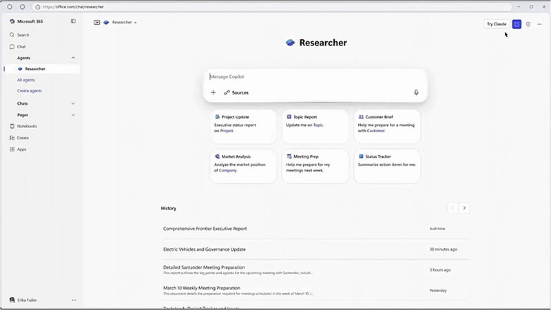 Microsoft şirkəti Anthropic-in Claude Sonnet 4 və Claude Opus 4.1 süni intellekt modellərini öz ofis tətbiqlərinə - Microsoft 365 Copilot-a inteqrasiya etməyə başlayıb. Bu, modellərin seçimini genişləndirəcək və müştərilərə Anthropic texnologiyalarını həm Researcher agentində, həm də Microsoft Copilot Studio-da süni intellekt agentləri yaradarkən istifadə etməyə imkan verəcək. Bu gündən etibarən Microsoft 365 Copilot istifadəçiləri Frontier tətbiqi vasitəsilə Anthropic modellərini qoşmaq imkanı əldə ediblər. Researcher tətbiqində “Try Claude” düyməsi peyda olub və bu, sistemi OpenAI modellərindən Claude Opus 4.1-ə keçirməyə imkan verir. Qoşulduqdan sonra isə bir alət daxilində fərqli süni intellekt mühərrikləri arasında asanlıqla keçid etmək mümkündür.