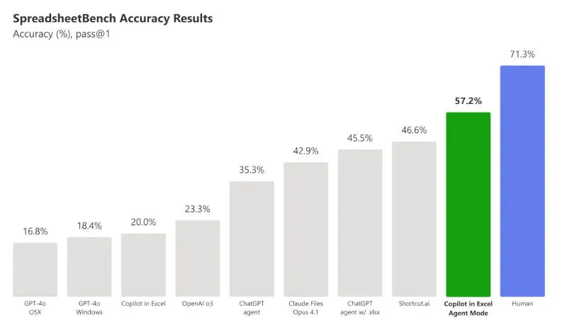 Excel-də süni intellekt agenti elektron cədvəllərin redaktə edilmə qabiliyyətini qiymətləndirmək üçün xüsusi hazırlanmış SpreadsheetBench testində 57.2% nəticə göstərib. Bu, Shortcut.ai, ChatGPT agenti və Anthropic Claude Files Opus 4.1 nəticələrindən yüksəkdir, lakin insan nəticəsi olan 71.3%-dən aşağıdır. Word-də agent rejimi sadəcə mətnin redaktəsi və xülasəsinin hazırlanması ilə məhdudlaşmır. Agent materialların qaralama variantlarını hazırlayır, dəqiqləşdirmələr təklif edir və sənədin tərtibatı zamanı nələrin lazım ola biləcəyini göstərir. Bir neçə ayın iş məlumatlarını vahid hesabatda toplamaq, ayın yekunlarını çıxarmaq və əvvəlki hesabatla fərqləri tez müəyyənləşdirmək mümkündür. Anthropic modelləri əsasında işləyən Office Agent Copilot çatında ofis tətbiqlərindən kənarda fəaliyyət göstərir, lakin birbaşa çat daxilində PowerPoint təqdimatları və Word sənədləri yaratmağa imkan verir.