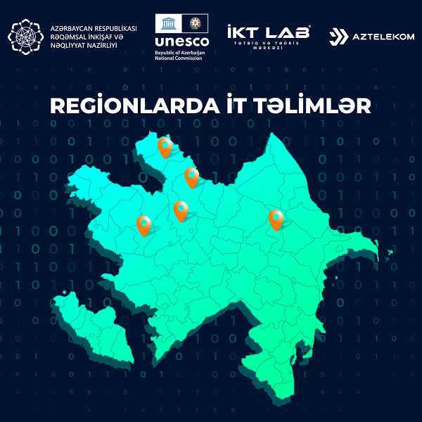 Rəqəmsal İnkişaf və Nəqliyyat Nazirliyinin təşəbbüsü ilə ödənişsiz informasiya texnologiyaları (İT) təlimləri regionlarda davam etdirilir. Bölgələrdə gənclərin bu sahədə bilik və bacarıqlarının artırılması məqsədilə təşkil edilən “İT texnik” təlimində iştirak təqaüd proqramı əsasında olacaq.