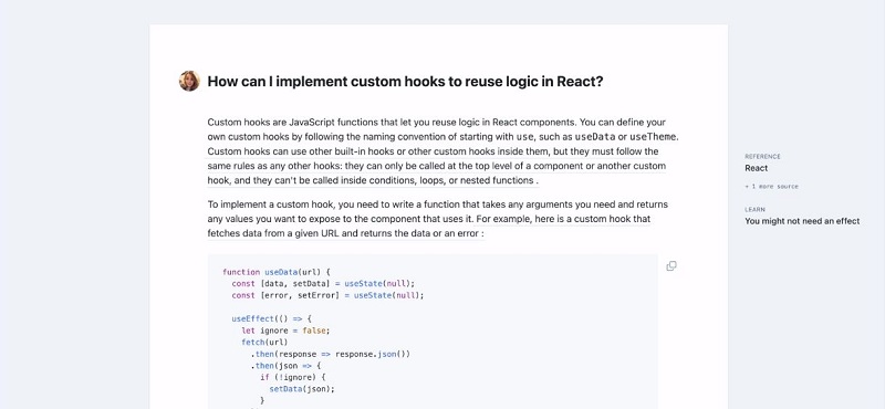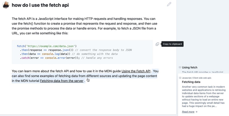 GitHub servisi sənədlərlə çalışmaq üçün nəzərdə tutulmuş Copilot alətini təqdim edib. Bu alət ChatGPT kimi çalışır və rəsmi kitabxanalar, dokumentasiyalar və resurslar barəsində məlumatların axtarışını aparmağa imkan verir. Bu alət GitHub, React, MDN, Azure, TypeScript və Webpack resurslarını əhatə edir. İstifadəçi öz növbəsində Copilot vasitəsilə lazımi resursu seçəndən sonra öz sualına olan cavabı və ya kod nümunələri ilə birlikdə müəyyən mövzu barəsində ətraflı məlumatı əldə etmək üçün filtrləri əlavə edə bilər. Sistem ilə adi sorğular vasitəsilə qarşılıqlı əlaqədə olmaq və kod nümunlərini məlumatların mübadiləsi buferinə kopyalamaq olar. İstifadəçi mouse işarəsini sistem tərəfindən tərtib edilmiş cavabda hansısa seçilmiş mətnə yönləndirən zaman sistem onun mənbəyini göstərəcək və müvafiq linki təqdim edəcək.