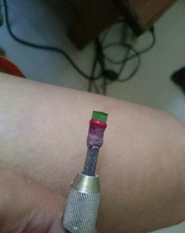 İncəliklə hazırladığı şüşə, möhtəşəm bir saxta zümrüdə çevrilir.