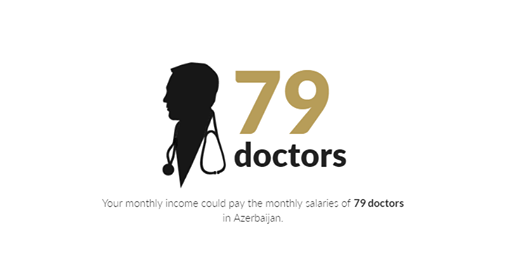 müqayisə edilir. Məsələn aylıq 1000 AZN gəliri olan biri Azərbaycanda 79 həkimin maaşını ödəyə bilər. (Burası maraqlı gəldi)