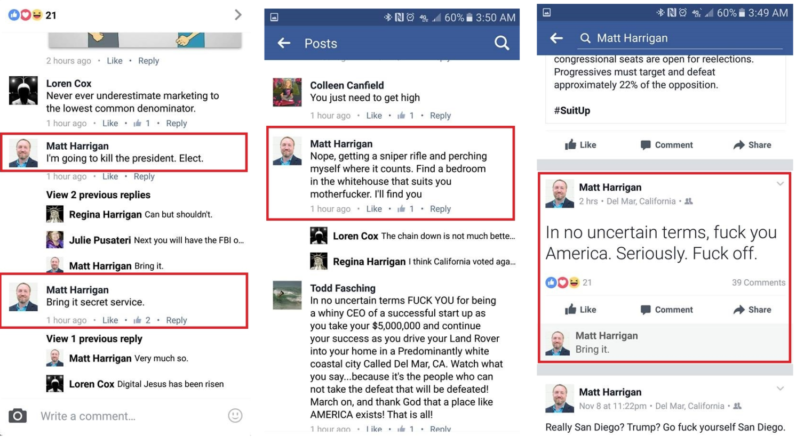 Harrigan adlı bu şəxs Facebook hesabında bir snayper silahı ilə Trumpı öldürəcəyi