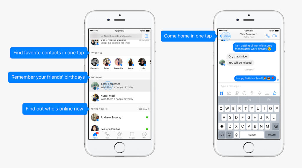 Dizayn hələ ki, sadəcə ana səhifə interfeysini əhatələyir. Messenger’ın indiki dizaynında xronoloji olaraq mesajlaşdığımız insanların siyahısı aşağı doğru sıralanır. Amma David Marcus hazırlığı son dizayn ilə proqramı biraz daha funksional edib. Belə ki, bu dəfə də şəxslər sıralanır, amma alt-alta deyil, yan yana. Alt hissədə isə ən çox mesajlaşdığınız insanların siyahısı (Favorites) əlavə olunub.