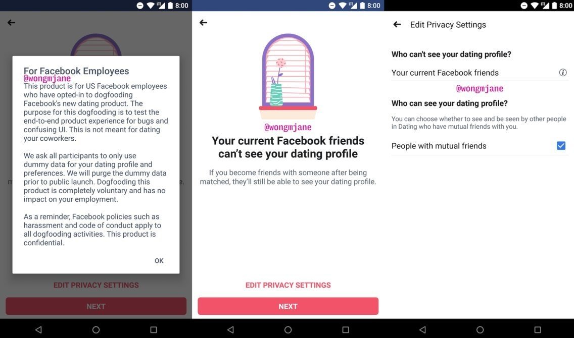 olunmuş yeni fotolardan da görmək olar ki, istifadəçi Facebook Dating servisindəki