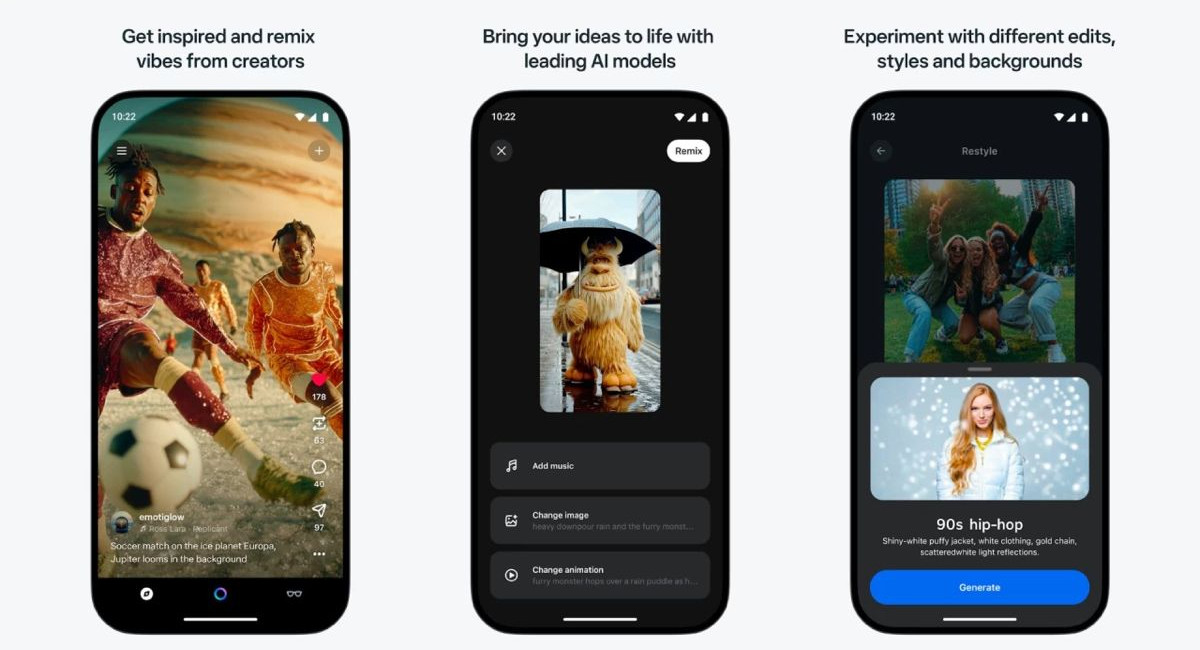 Meta Platforms süni intellektin köməyi ilə qısa videolar yaratmaq və paylaşmaq üçün yeni Vibes platformasını təqdim edib. Məlumata görə, Vibes platforması Meta AI tətbiqində və meta.ai saytında əlçatandır. Vibes-in işə salınmasını Meta-nın baş direktoru Mark Zuckerberg Instagram-da elan edib və orada süni intellekt vasitəsilə hazırlanmış bir sıra videolar da təqdim olunub. Videolardan birində tüklü məxluqlar qrupu bir tüklü kubdan digərinə atılır. Başqa birində pişik xəmir yoğurur, üçüncüsündə isə qadın qədim Misir mənzərəsinə açılan eyvanda selfi çəkir. Platforma vasitəsilə videoları sıfırdan yaratmaq, mövcud kontentdən istifadə etmək və ya lenti videolarının remiksini hazırlamaq, onlara yeni vizual effektlər əlavə etmək və ya musiqi qoymaq mümkündür. Hazırlanmış videonu Vibes lentində paylaşmaq, digər istifadəçilərə göndərmək və ya Instagram, Facebook Stories və Reels-də kross-post etmək olar.