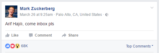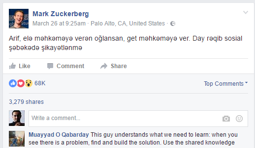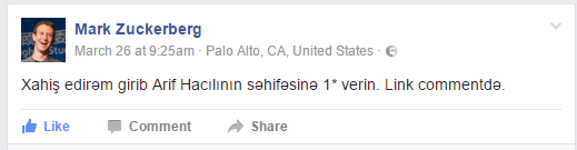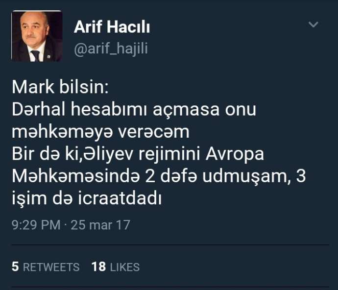 Müsavat partiyasının başqanı Arif Hacılıdan "Twitter"də Mark Zukerberqə göndəriş!