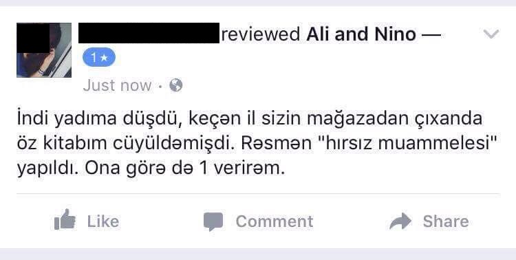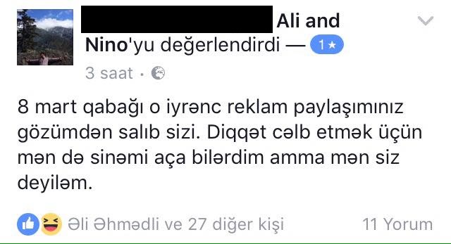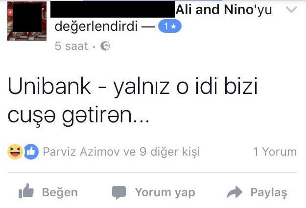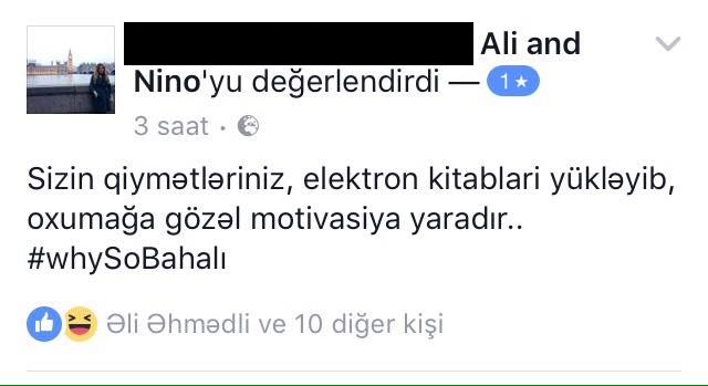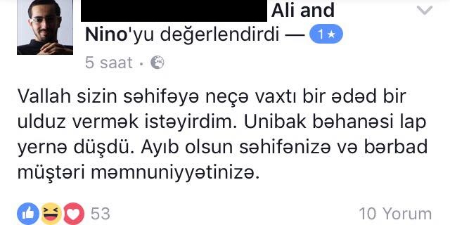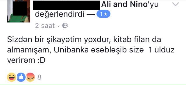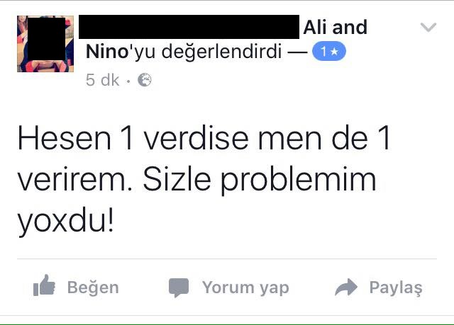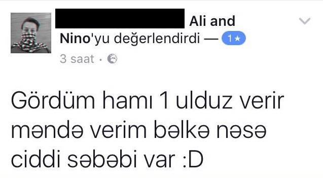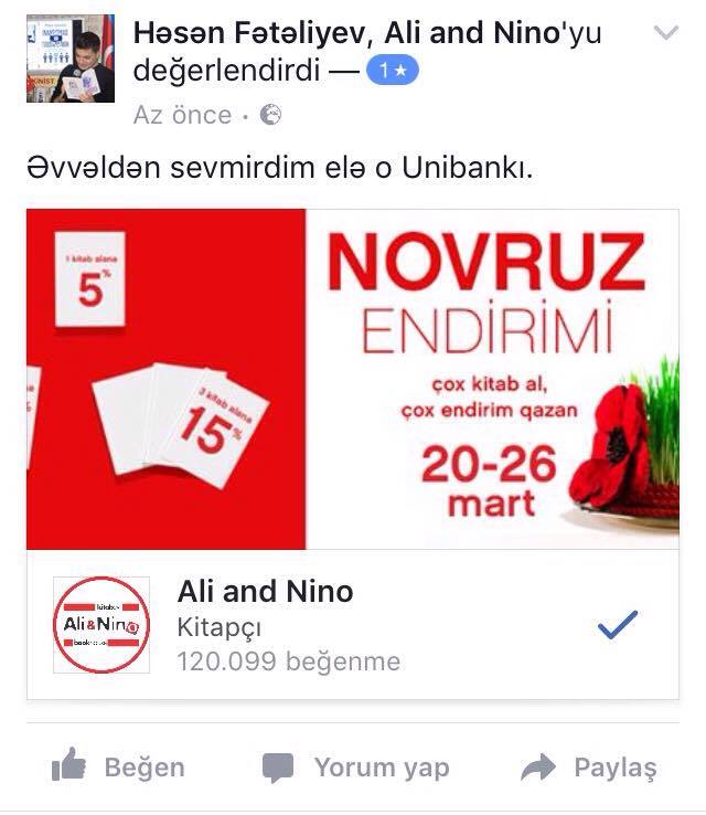 Dünəndən etibarən Azərbaycan sosial media gündəmini zəpt edən qiymətləndirmə mövzusunun son qurbanı "Ali and Nino" mağazalar şəbəkəsi oldu. "Unibank" rəsmi səhifəsinin qiymətləndirmələrə bağlanmasından sonra qəzəbli istifadəçilər bütün hirsini "Ali and Nino" mağazalar şəbəkəsinin rəsmi "facebook" səhifəsindən çıxarmağı qərara aldılar. İllərdir "Ali and Nino" mağazalarından acıqlı olan müştərilərin qiymətləndirmələrini yazması üçün bir qığılcım kifayət etdi. Həmin qiğılcım isə ilk olaraq sosial medianın məşhur simalarından biri olan Həsən Fətəliyevdən gəldi.