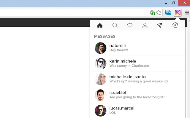 Plaqində Instagramın mobil versiyasında mövcud olan mesajlaşma yəni Direct funksiyası mövcuddur. Instagram istifadəçilərinin çoxu web