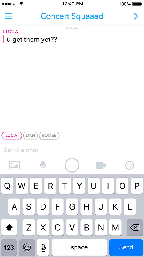 Snapchat istifadəçiləri maksimum 16 nəfərlik qruplar qura və burda müzakirələr