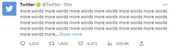 Məlumatda qeyd edilib ki, bu cür tweet-lər tam şəkildə görünmür. 4000 simvola sahib tweet-i tam şəkildə görmək üçün “show more” düyməsinə klikləmək lazımdır. Qeyd etmək lazımdır ki, Twitter Blue abunəliyinə sahib olmayan istifadəçilər bu cür tweet-ləri tam şəkildə repost edə bilməyəcəklər. Bundan əlavə olaraq onlar bu cür tweet-lərə 4000 simvoldan ibarət cavablar da yaza bilməyəcəklər. Yaxın gələcəkdə Twitter daxilindəki mesajların mətnlərinin redaktə edilməsi funksiyasının istifadəyə verilməsi planlaşdırılır.