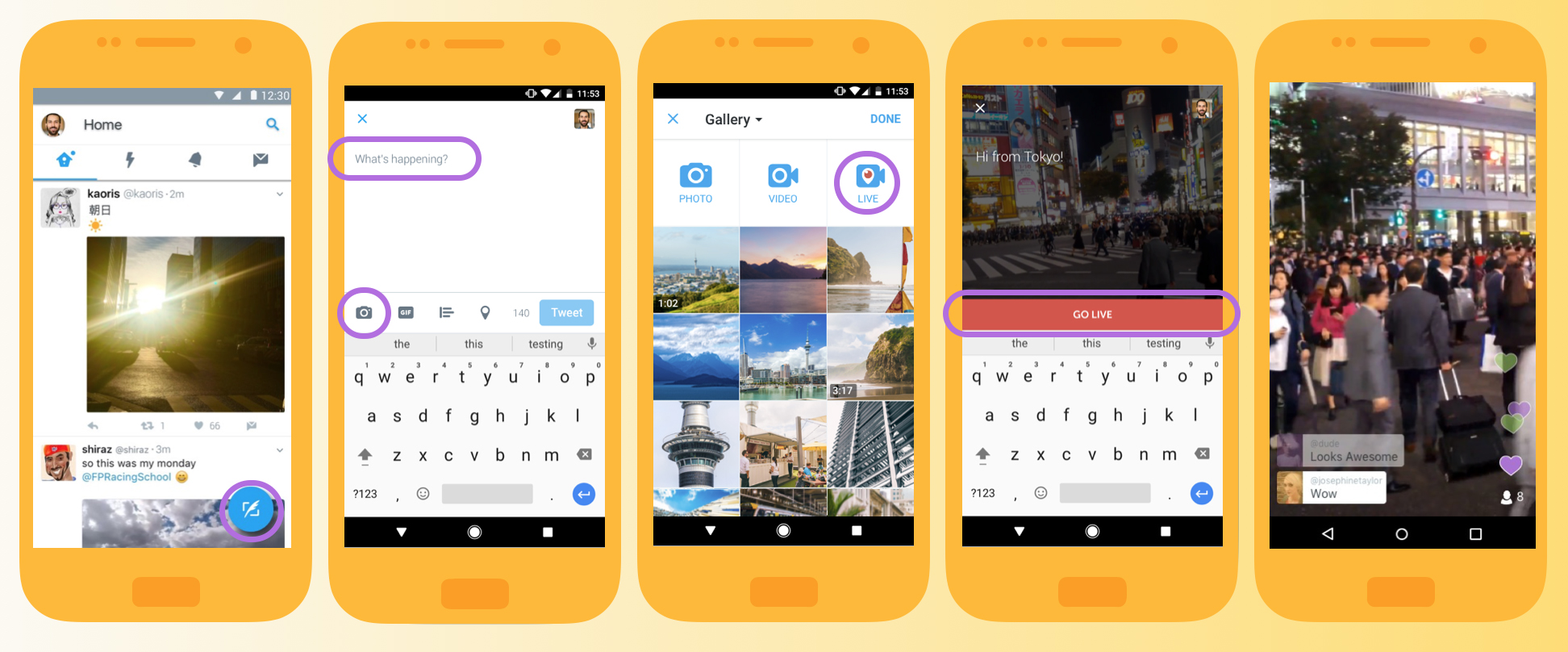 yeni tweet yazmaq bölməsinə yönlənərək foto/video hissəsindəki canlı yayım düyməsinə