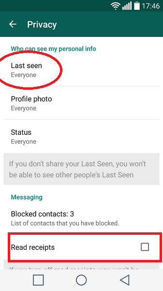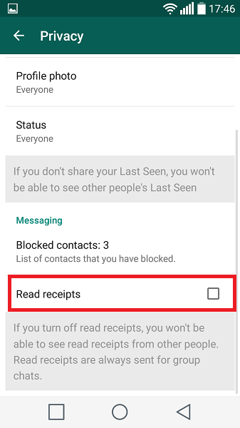 - Son hissədə olan "read receipts" seçimini deaktiv edirik.