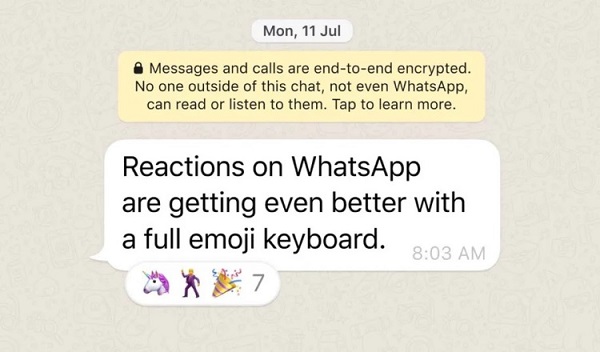 Verilmiş rəsmi məlumata əsasən yaxın zamanda Whatsapp istifadəçiləri mesajlara istənilən emoji vasitəsilə reaksiya bildirə biləcəklər. Bu barədə məlumatı Meta şirkətinin CEO-su Mark Zuckerberg verib. “Biz, Whatsapp-da reaksiyalar qismində istənilən emojinin istifadəsi imkanını təqdim edirik” - deyə Zuckerberg öz Facebook hesabında qeyd edib. Bu yenilik Whatsapp istifadəçilərinə emojilər vasitəsilə reaksiyalar bildirmək funksiyasının istifadəyə verilməsindən bir neçə ay sonra gəlir. Qeyd etmək lazımdır ki, istifadəçilər hal hazırda Whatsapp-dakı mesajlara məhdud sayda emoji vasitəsilə reaksiya bildirə bilirlər.